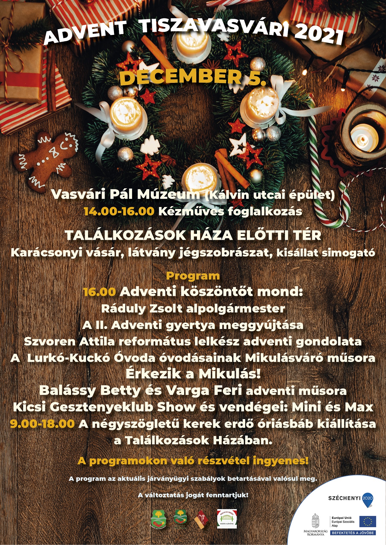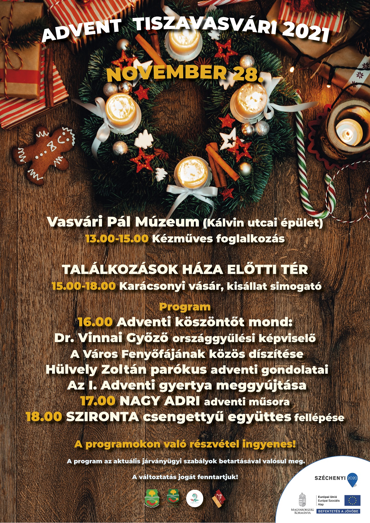 Tájékoztatjuk Önöket, hogy 2020. december 28. és 2020. december 31. között a Vasvári Helyi Közösség munkaszervezetének ügyfélszolgálata az alábbi rend szerint elérhető: