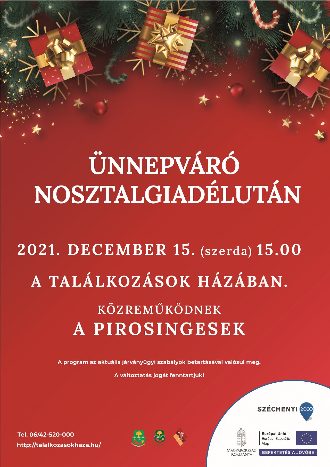• telefonon: munkaidőben (2020. december 31-én 8-12 óra között)