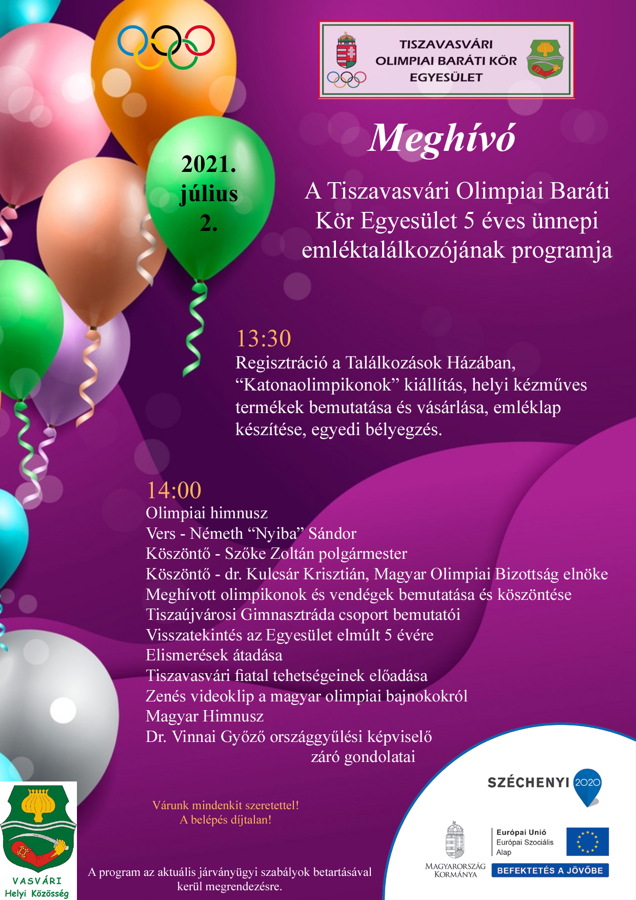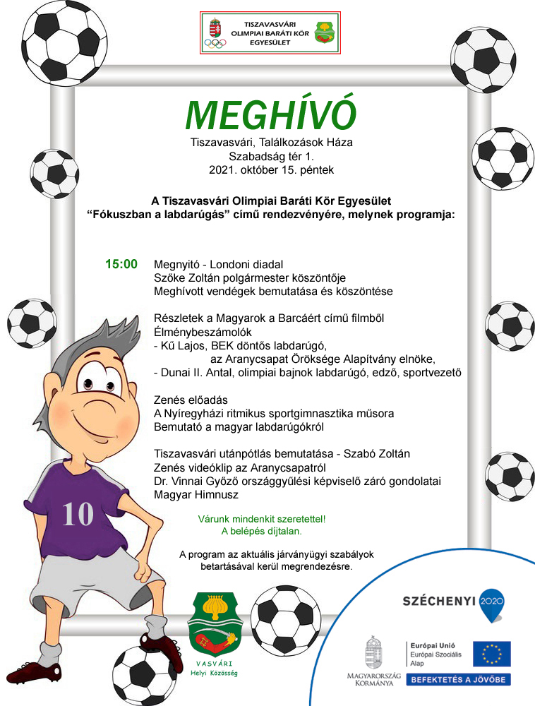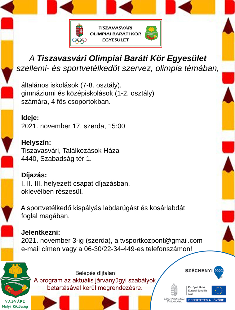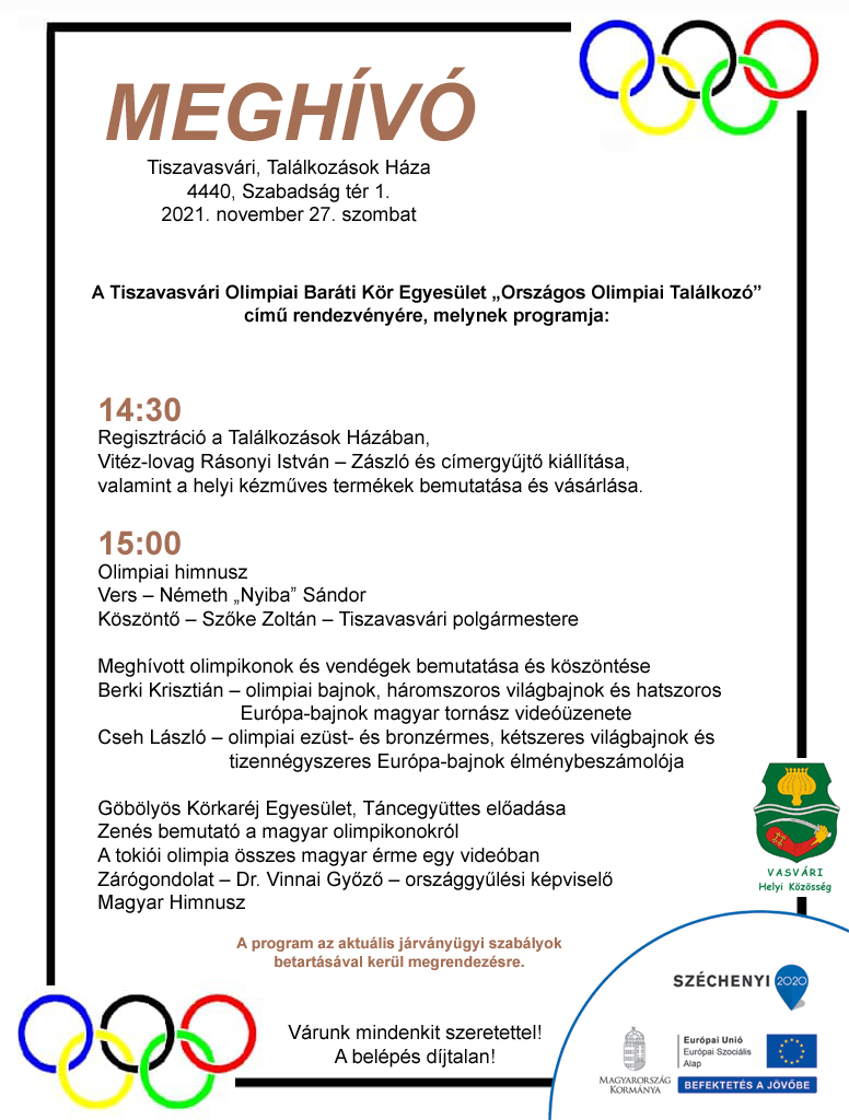 Tájékoztatjuk Önöket, hogy a Tiszavasvári Olimpiai Baráti Kör Egyesület 2020. október 3-ára tervezett 5 éves jubileumi emléktalálkozója a megbetegedettek számának drasztikus növekedése miatt sajnálatos módon, későbbi időpontban kerül megtartásra.”